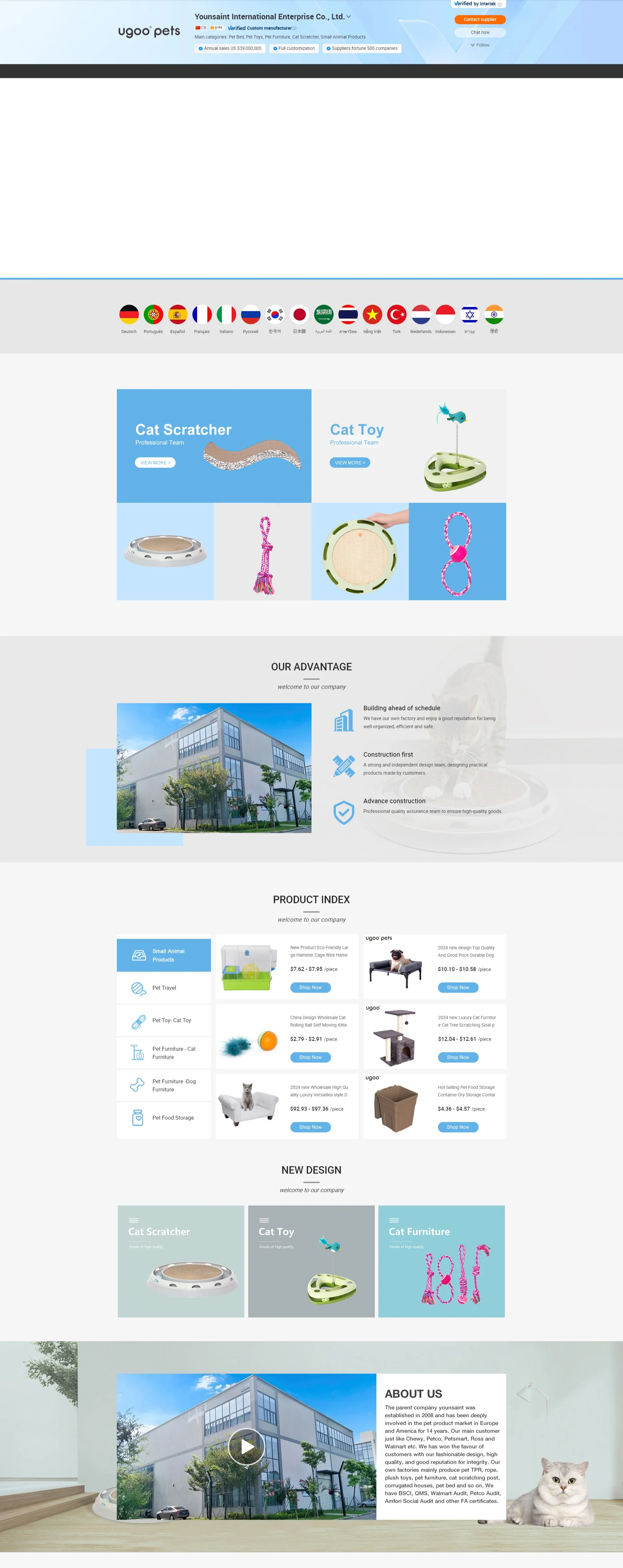 मुख्य उत्पादों: पालतू बिस्तर, पालतू खिलौने, पालतू फर्नीचर, बिल्ली खरोंच, छोटे पशु उत्पाद